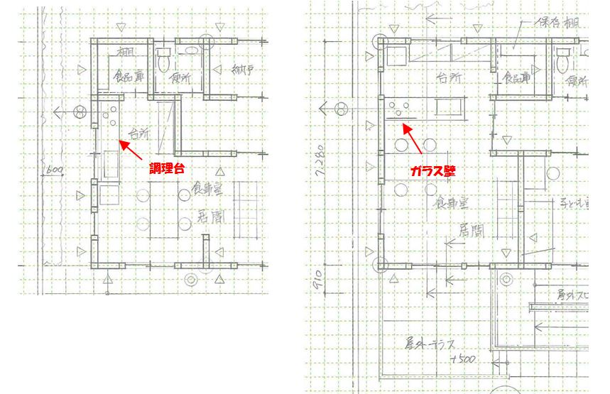 コンロ位置は、できるだけ外壁に面したところにします。(必ずではありません)
