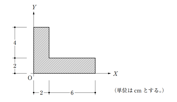 〔No. 1〕 図のような断面において、図心を通りX軸に平行な図心軸に関する断面二次モーメントの値として、正しいものは、次のうちどれか。