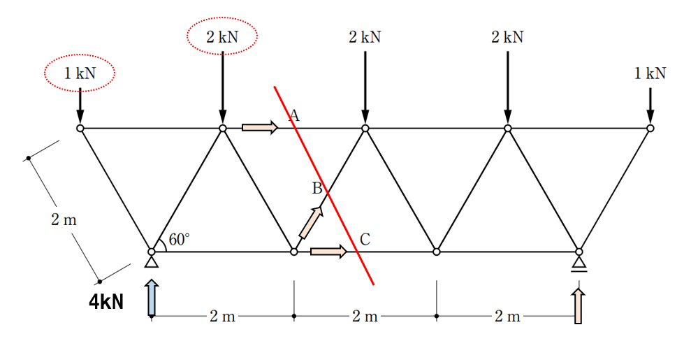 このトラスの問題も先ほどの問題と同じで、構造力学としては比較的難しい問題に分類されます。ただし、この問題も基本的な考え方が理解できていれば解くことができます。是非、挑戦してみてください。過去の比較的簡単なトラスの問題から解いてみるのもいいかもしれませんね。